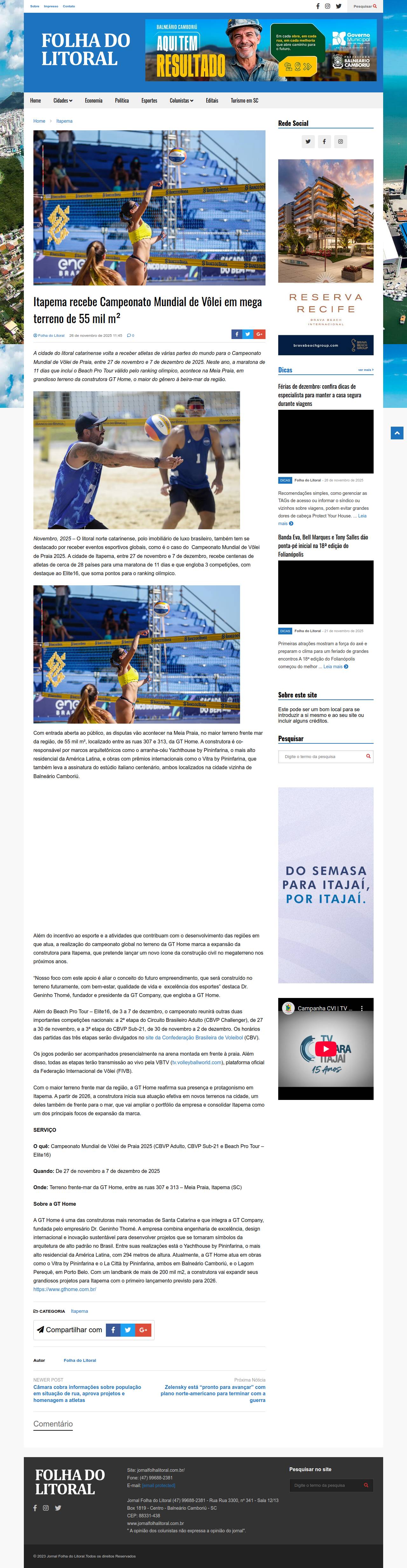 Itapema recebe Campeonato Mundial de Vôlei em mega terreno de 55 mil m˛ - Jornal Folha do Litoral